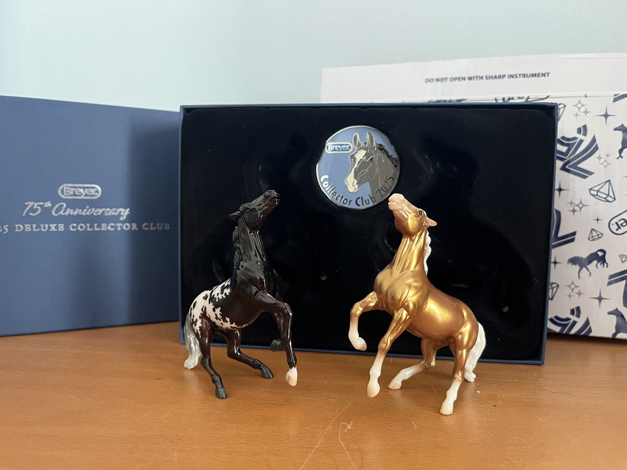 I got an OOAK! This Collection Showcase post is also an announcement. This is not a regular Premier Club Rowan, it's the one and only glossy mare version! What makes this model truly OOAK is that the factory gloss was applied only to the two special pieces Breyer gifted to the sculptor of the mold, Kelly Sealey. One stallion and one mare. She later offered them for auction, and I managed to get the version I wanted! The COA is a regular one, but Kelly told me she will create and send a special COA for me, which is really exciting. This was also the most anxious parcel I’ve ever waited for, because I needed many, many papers and documents for the package to go through customs. But now I finally have it, and I’m so happy it arrived safely.